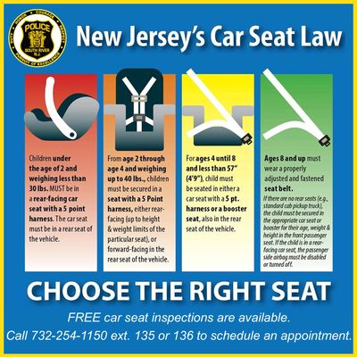 In addition, appointments for free child safety seat inspections are available year-round with the South River Police Department. To schedule an appointment, call 732-254-1150 ext. 135 or 136.